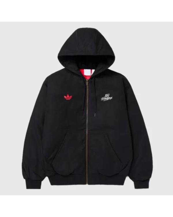 The 100 Thieves Black Hooded Jacket is made for gamers and streetwear lovers. It has a clean black look with a cool hood and zipper front. We also have Xmas 2022 Lillian Doucet Roche Leather Jacket.