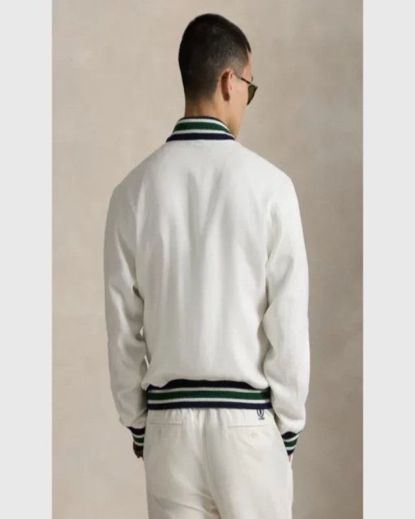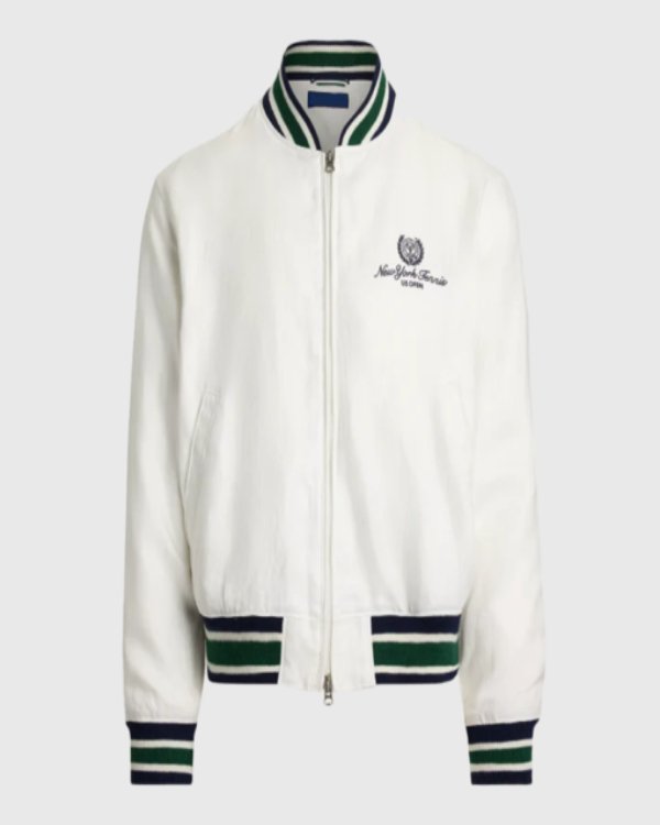 The 2025 US Open Linen White Bomber Jacket brings a clean, sporty, and classy style together. Its pure white color gives a bright and elegant look. The ribbed cuffs and zip-up front make it easy to wear. It’s made for people who love tennis and modern fashion.