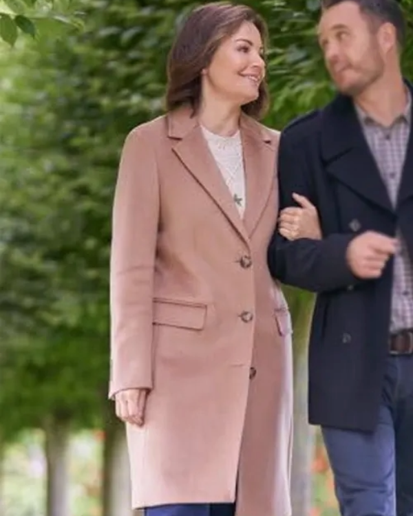 Inspired by Erica Durance’s refined and romantic appearance in A Scottish Love Scheme (2024), this pink trench coat reflects elegance, confidence, and warmth. It’s ideal for anyone who loves soft, stylish fashion that feels timeless and graceful.