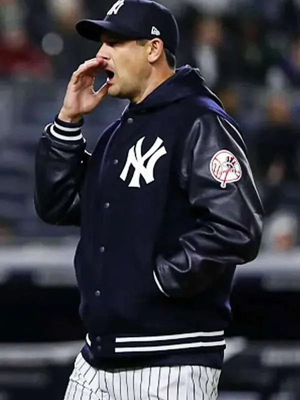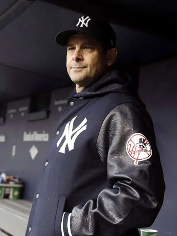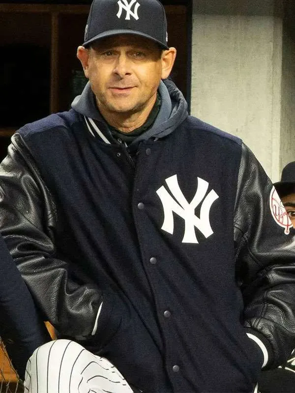 This jacket has a bold varsity look inspired by Aaron Boone’s NY Yankees style. The clean design gives a sporty classic and modern touch. It pairs easily with jeans tees and everyday outfits. It adds comfort and a standout stylish feel to your daily look.