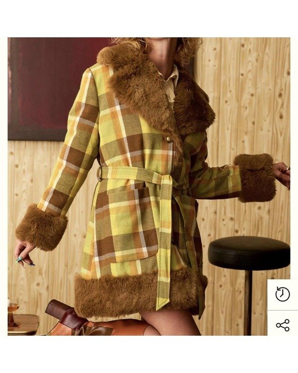 The AEW Dynamite 2025 Paige Wooding Green Plaid Fur Coat has a button-up front and a waist belt for a perfect fit. The green plaid design looks bold and trendy. It also has side pockets for keeping small items. This coat is perfect for casual or stylish outings.