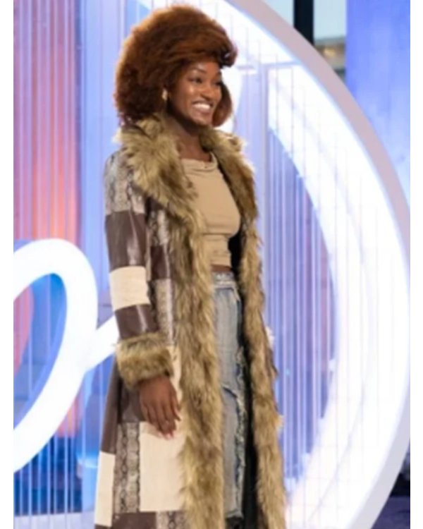 American Idol S23 Lashon Brown Patchwork Fur Trim Coat