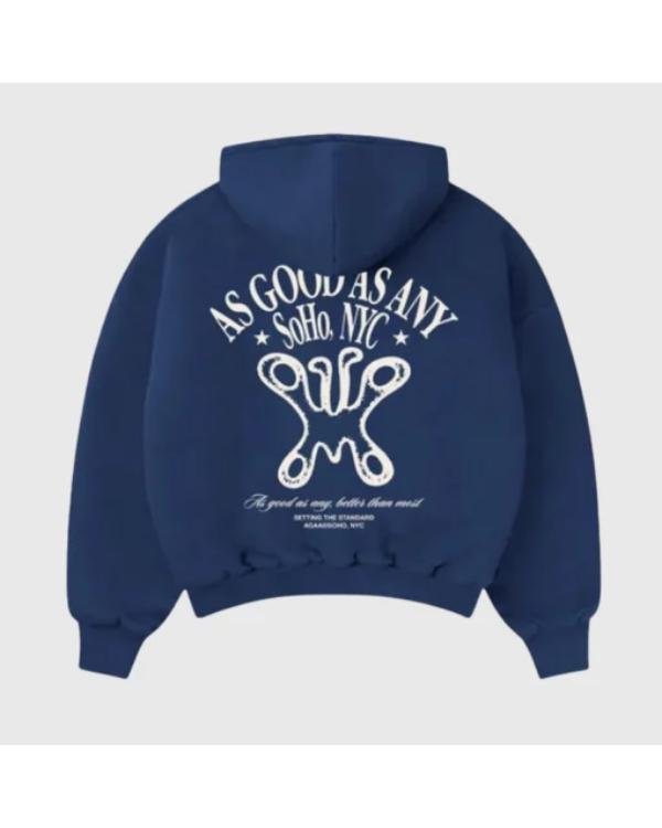 The As Good As Any Blue Hoodie is inspired by people who love comfort with style. It shows confidence and a chill vibe — just like cool stars who enjoy simple but classy looks.