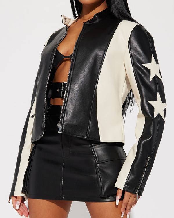 When you wear this leather jacket, you’ll look brave, trendy, and full of energy. The star detailing adds a fun and unique touch, giving your outfit a cool and stylish movie-inspired vibe.