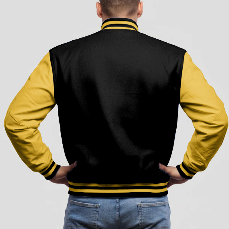 Black Wool & Bright Gold Leather Varsity Jacket