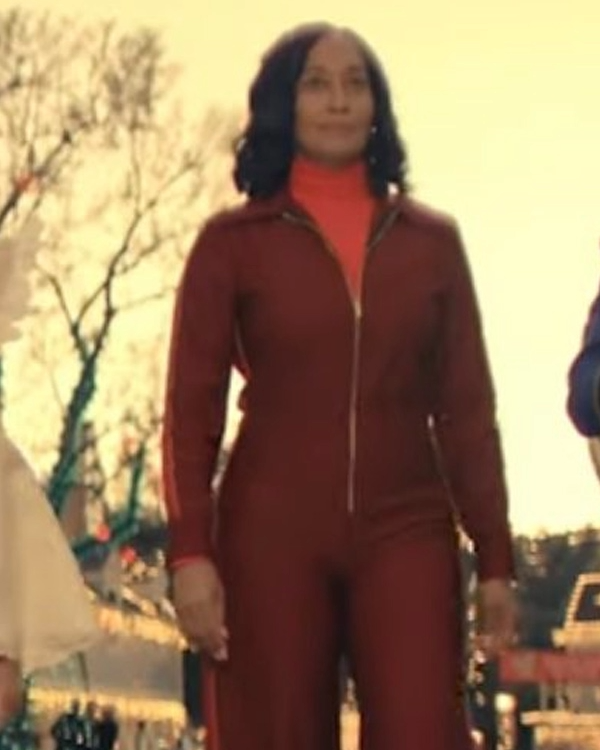 Candy Cane Lane 2023 Tracee Ellis Ross Maroon Jumpsuit