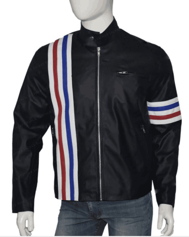 Inspired by the iconic Easy Rider look worn by Captain America, this jacket reflects freedom, rebellion, and classic biker attitude. The design carries strong cinematic influence combined with vintage motorcycle culture. It represents confidence and individuality, making it ideal for men who appreciate bold fashion inspired by legendary film characters and timeless road-ready style.