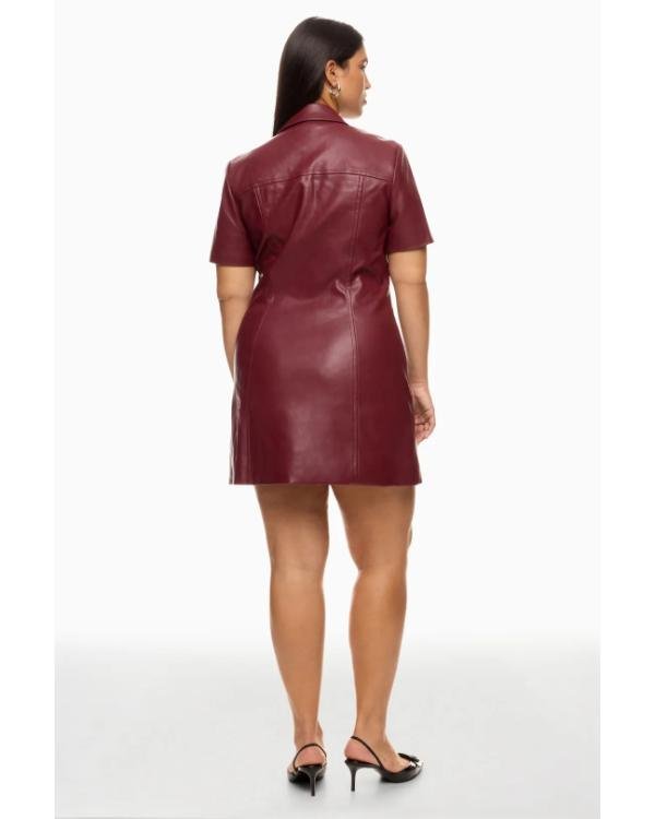When you wear this leather dress, you’ll look bold, classy, and modern. The rich burgundy color adds a touch of sophistication, while the leather gives you a sleek, powerful silhouette. You’ll feel confident, stylish, and ready to stand out at work or any special event.