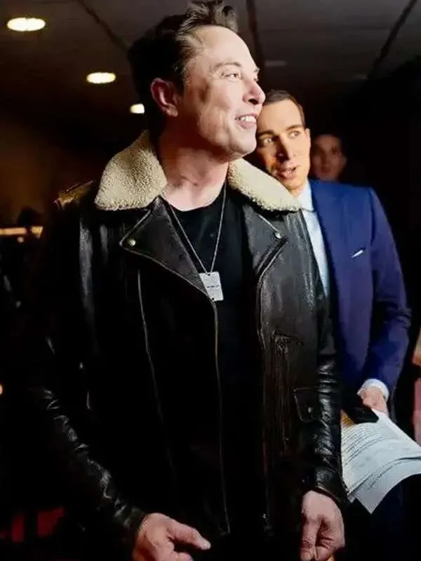 Elon Musk Black Leather Aviator Jacket
