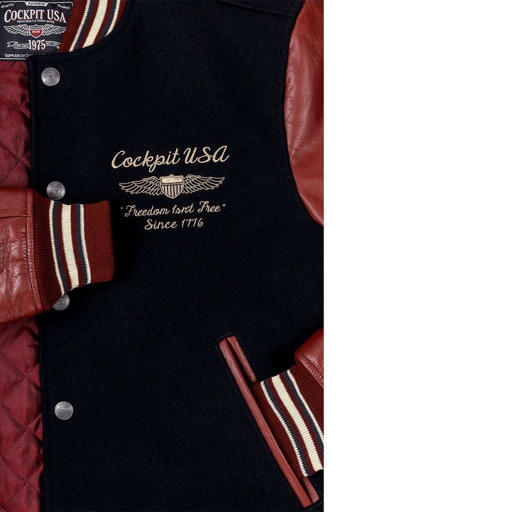 On the front left chest, the jacket features signature Cockpit USA Wings, along with the embroidered script, “Cockpit USA, Freedom Isn’t Free, Since 1776.” This detail commemorates American Independence and the legacy of American resilience.