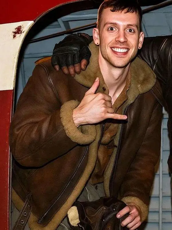 This jacket has a clean brown leather style inspired by George Somner’s look in Afterburn 2025. The simple design gives a bold neat and modern touch. It matches jeans shirts and casual outfits with ease. It adds smooth comfort and classic charm to your daily fashion.