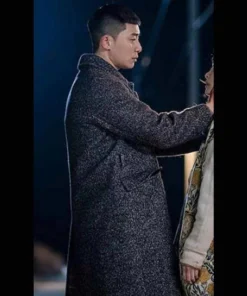 - Park Seo-Joon’s most prominent long coat in the show is a classic long wool coat, not a trench coat.
