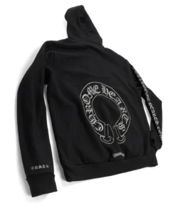 This hoodie isn’t for the faint of heart. It’s a bold statement piece that commands attention with its imposing Chrome Hearts iconography.