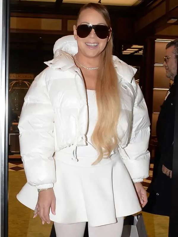 This jacket is inspired by Mariah Carey Aspen 2023 winter appearance where luxury style met cozy mountain fashion. It reflects celebrity winter looks and high end vacation outfits. The white color represents elegance confidence and timeless winter fashion. Inspired by alpine settings and glamorous celebrity travel style this jacket connects winter wear with pop icon influence. It appeals to fans who admire fashionable cold weather outfits with a refined celebrity touch.