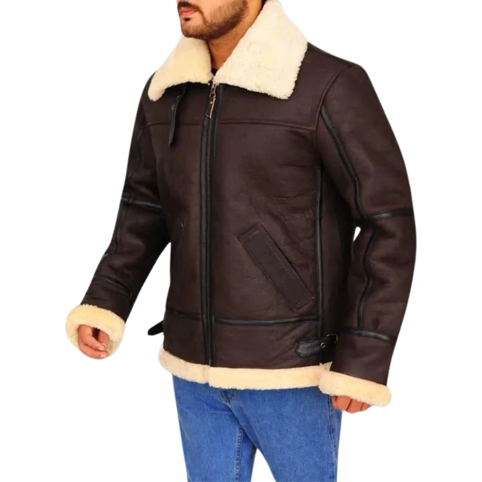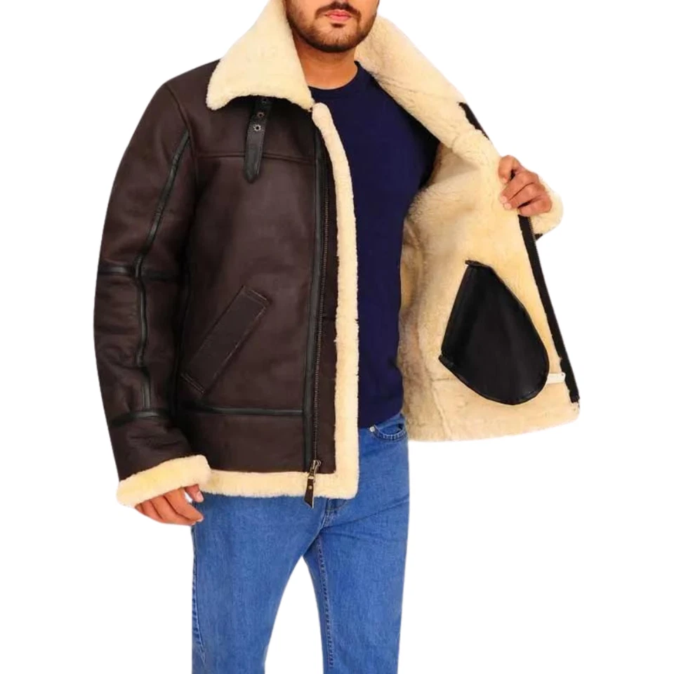 Men B3 Shearling Brown Leather Jacket is made from strong soft leather with warm shearling inside. It feels smooth on your skin and keeps you cozy in cold weather. The material holds its shape well after daily wear. It is perfect for winter days and outdoor plans. We also have Men Black Casual Fur Leather Jacket.