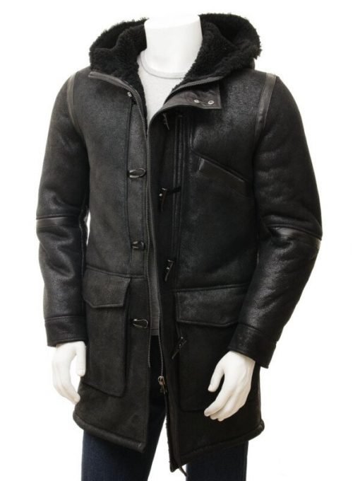 Mens Black Sheepskin Duffle Coat