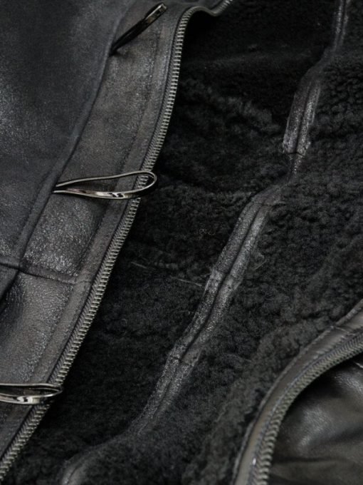 This coat is typically crafted from genuine, high-grade sheepskin, also known as shearling. The full-grain outer hide provides a durable, wind-resistant black finish. We also have Mens Greatest Black Shearling Leather Coat.