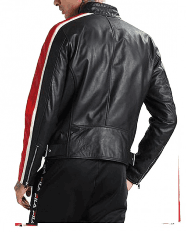 Men’s FJM251 Motorcycle Striped Leather Jacket