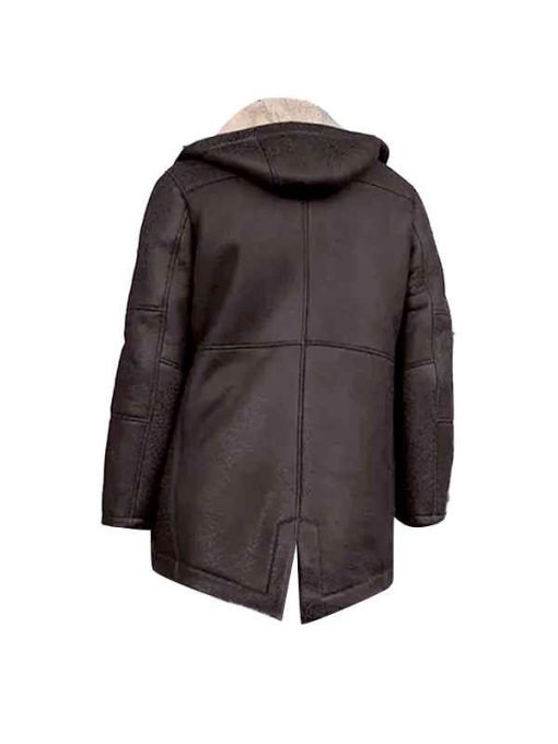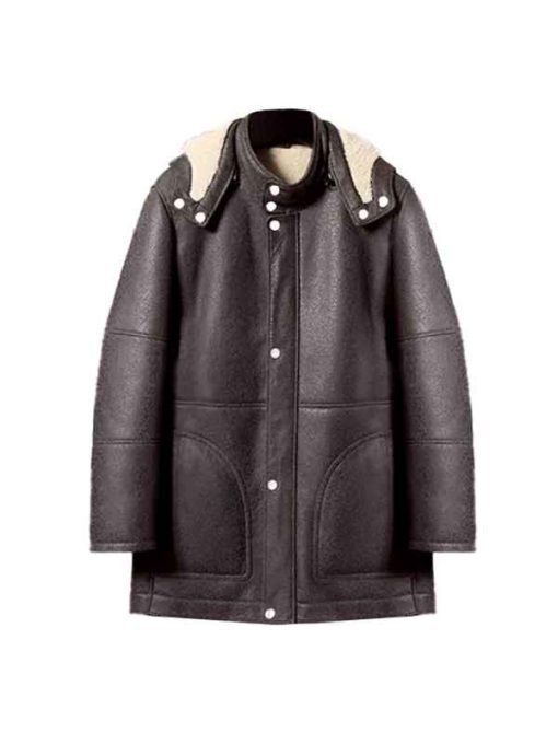 This garment features a trench coat length, typically falling to the mid-calf or ankle, providing maximum coverage and a dramatic, elegant silhouette. The entire interior is lined with thick, dense sheepskin shearling, making it an exceptionally warm winter outerwear choice. The exterior is crafted from durable real leather, often in a deep brown color. We also have Men Brown Shearling Coat.