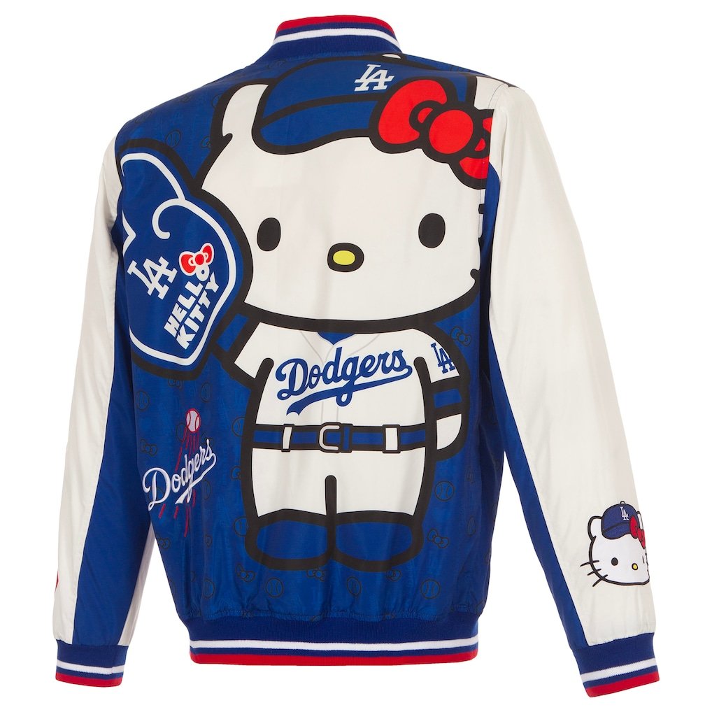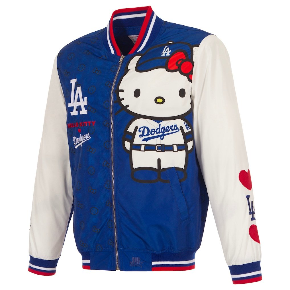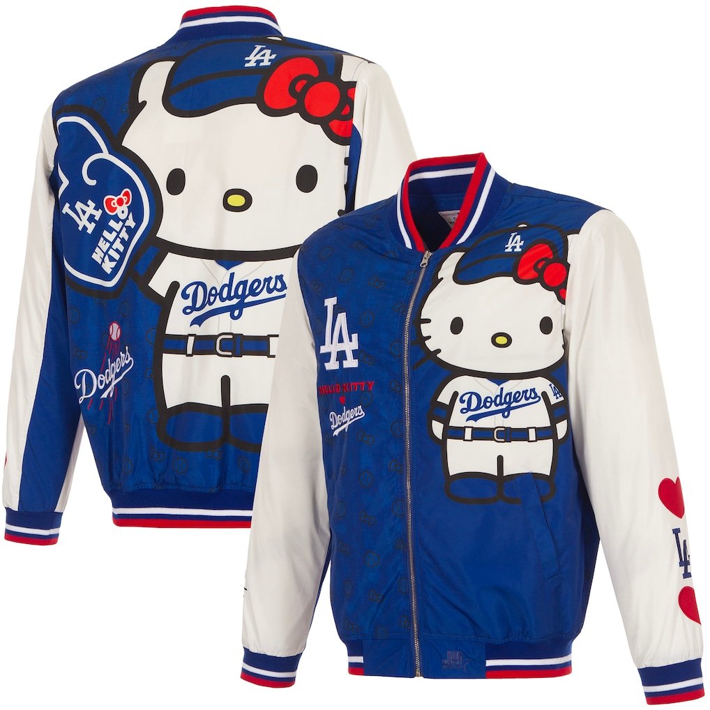 Men’s Los Angeles Dodgers x Hello Kitty JH Design Royal Full-Zip Nylon Bomber Jacket