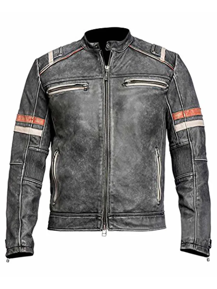 Men’s Motorcycle Retro Cafe Racer Black Leather Jacket