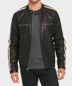 This motorcycle leather jacket is crafted from genuine, high-quality leather, often with a smooth or slightly textured finish. Its defining characteristic is the inclusion of bold racing stripes, typically in contrasting colors like white, red, or black. These stripes are usually positioned on the sleeves, shoulders, or down the sides of the jacket, emphasizing speed and dynamism. We also have Mens Multi Pocket Leather Vest.