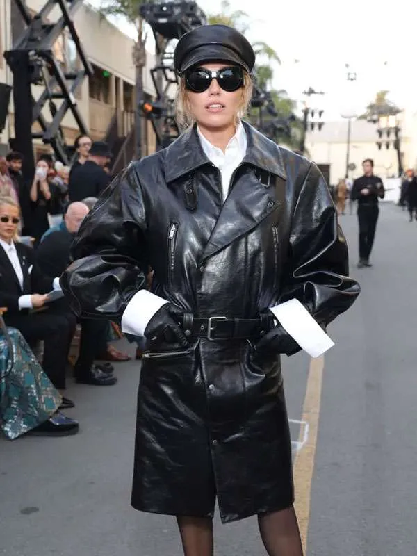 Miley Cyrus 2026 Black Leather Coat