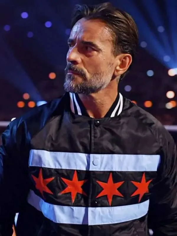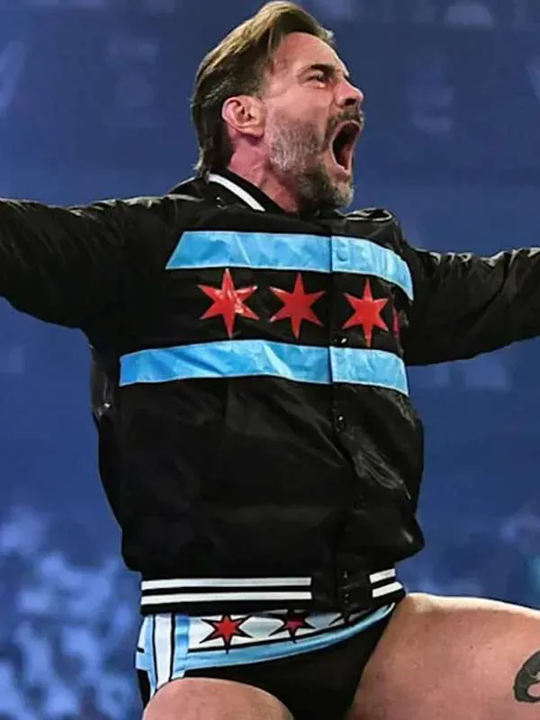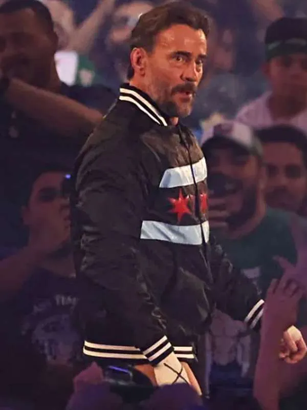 This jacket has a bold black varsity look inspired by CM Punk’s appearance at Night of Champions 2025. The clean design gives a sharp sporty and modern touch. It pairs easily with jeans tees and everyday outfits. It adds comfort and a standout stylish feel to your daily look.