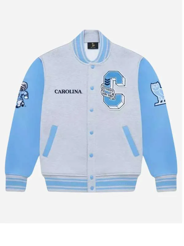 This jacket has a bold varsity look inspired by Drake’s OVO style and North Carolina colors. The clean design gives a sporty modern and stylish touch. It pairs easily with jeans tees and everyday outfits. It adds comfort and a standout fashionable feel to your daily look.