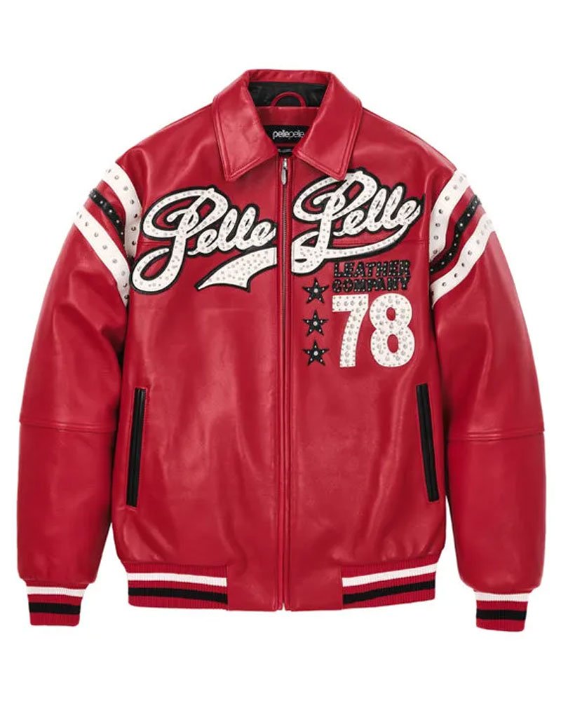 Pelle Pelle Red Encrusted Varsity Plush Jacket