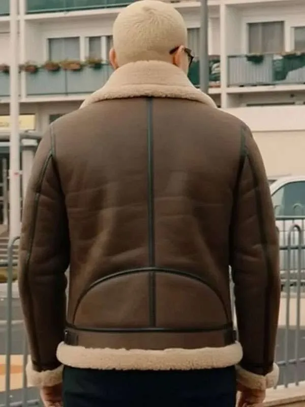This jacket has a bold shearling style inspired by PLK’s look in Tu Vois Comment. The brown leather and warm inner lining give a clean simple look. It matches jeans shirts and casual outfits with ease. It adds warm comfort and a classic winter touch to your daily fashion.