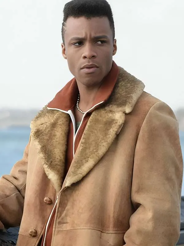 This jacket has a bold shearling style inspired by Dyllon Burnside’s look in Pose. The rich brown leather and warm lining give a clean simple look. It matches jeans shirts and casual outfits with ease. It adds warm comfort and stylish charm to your everyday fashion.