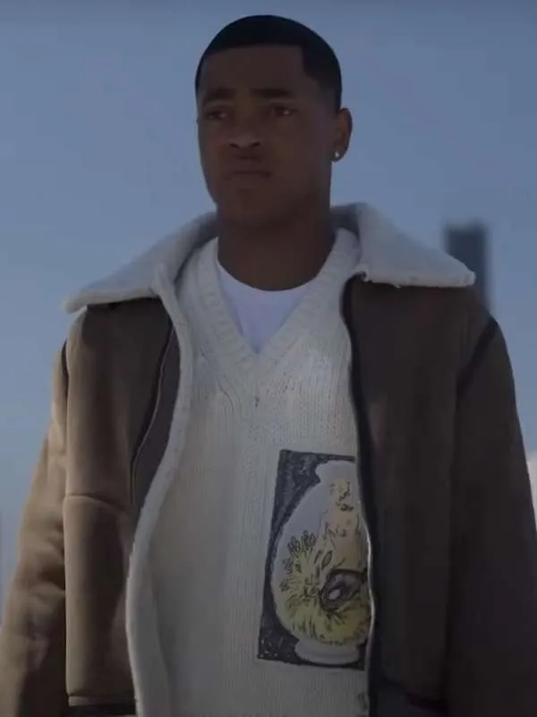 This jacket has a bold clean winter style inspired by Cane Tejada’s look in Power Book II Ghost S04. The rich leather and soft shearling give a sharp simple and modern touch. It matches jeans shirts and casual outfits with ease. It adds warm comfort and strong style to your daily fashion.