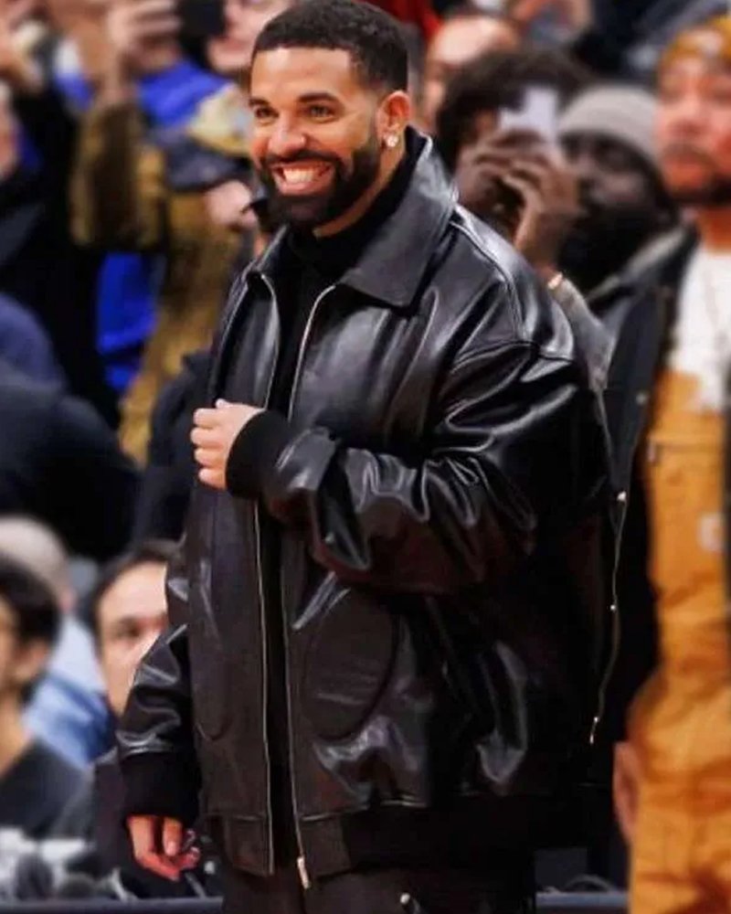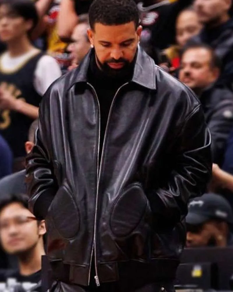 Raptors VS Warriors Game 2025 Drake Leather Jacket