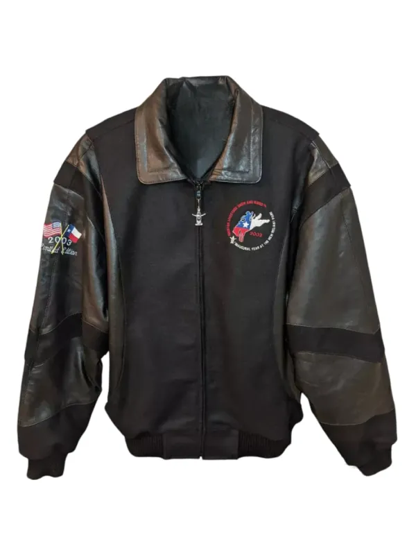 This jacket is inspired by the iconic style of the Houston Livestock Show and Rodeo from 2003. The classic leather design gives a rugged timeless feel that pairs perfectly with jeans, boots, and casual outfits. It adds a bold western edge to your everyday wardrobe.