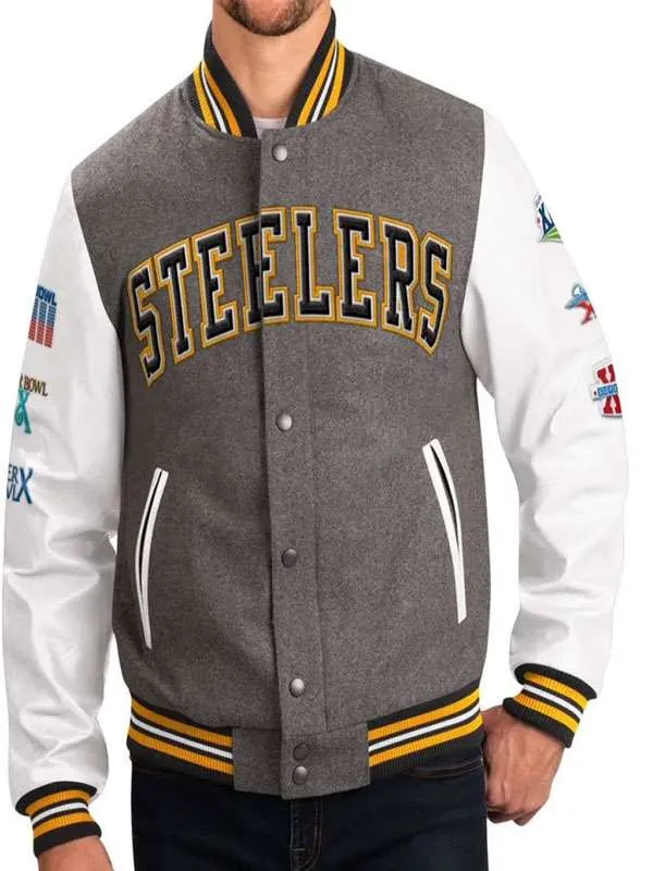 This jacket has a bold varsity look inspired by the Pittsburgh Steelers Super Bowl legacy. The classic design gives a sporty strong and modern touch. It pairs easily with jeans tees and fan outfits. It adds comfort and a proud team style to your daily look.