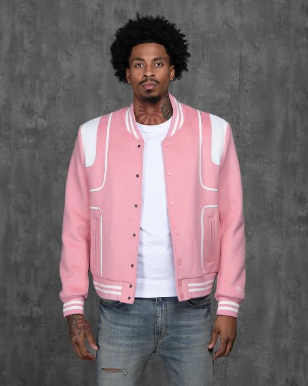 Caught In The Act Double Life Tamar Braxton Pink Varsity Jacket is made from premium wool blend fabric with durable leather sleeves and a soft viscose inner lining. This varsity bomber jacket feels warm smooth and comfortable for everyday wear. The pink jacket keeps you cozy in cool weather while staying breathable and flexible. The strong fabric with leather sleeves gives a stylish varsity jacket look similar to a classic bomber jacket and leather jacket feel. We also have Carolina Panthers Cam Newton Varsity Jacket.