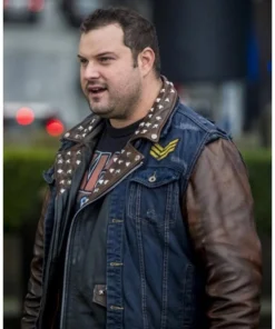 - Collar: Jacket wide lapel collar with metal studs, vest shirt collar