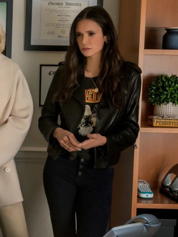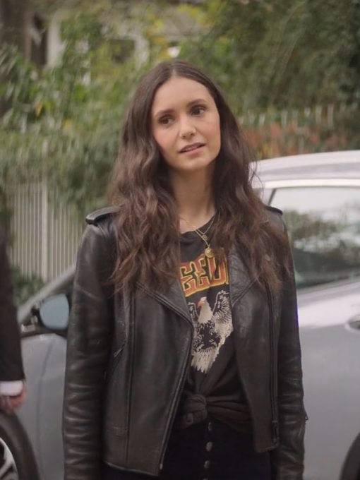 The Out Laws 2026 Nina Dobrev Black Leather Jacket