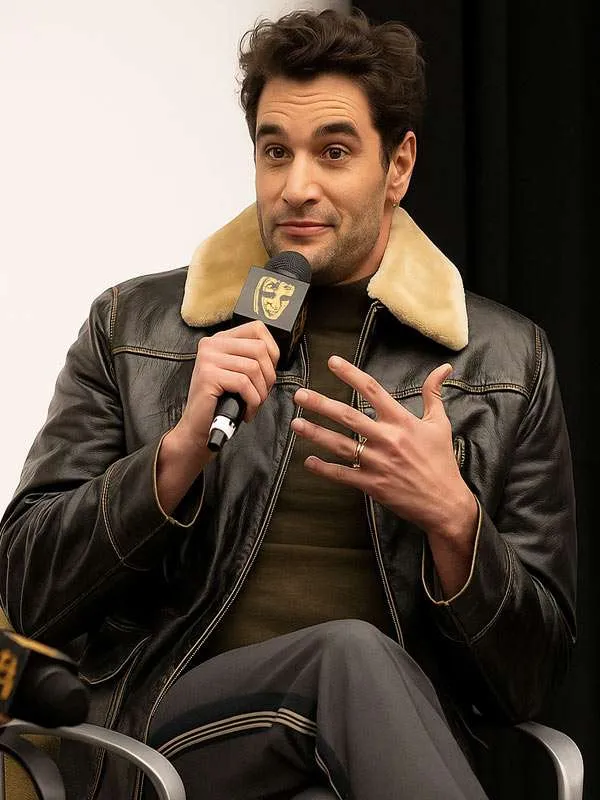 Tom Bateman Hedda BAFTA Shearling Leather Jacket is made from soft leather with warm shearling inside. It feels smooth on the skin and keeps you cozy on cold winter days. The material stays firm and holds its shape with daily use. It is perfect for outdoor wear and cold weather style. We have also 12 Dates of Christmas Chad Savage Black Leather Jacket.