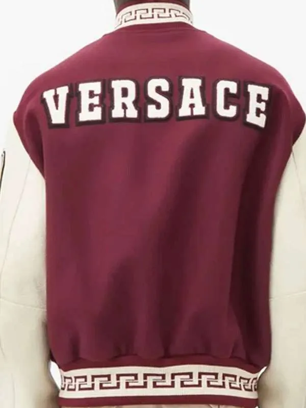 Versace Varsity Maroon Jacket is made from soft wool with strong leather sleeves and a smooth inner lining. It feels gentle on your skin and keeps you comfortable in cool weather. The material stays firm and holds its shape after daily wear. It is perfect for casual days and stylish outings. We also have Versace Varsity Jacket.
