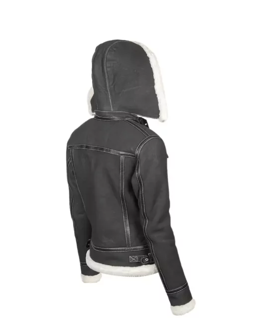 This jacket is a sleek and iconic piece of outerwear, known for its bold aesthetic. It is typically crafted from a durable, high-quality genuine or faux leather, with a soft and luxurious shearling or faux shearling lining. The design features a modern, clean-lined aesthetic that is both practical and stylish, offering a striking contrast between the smooth outer shell and the cozy inner lining. We also have Women Biker Shearling Leather Jacket.