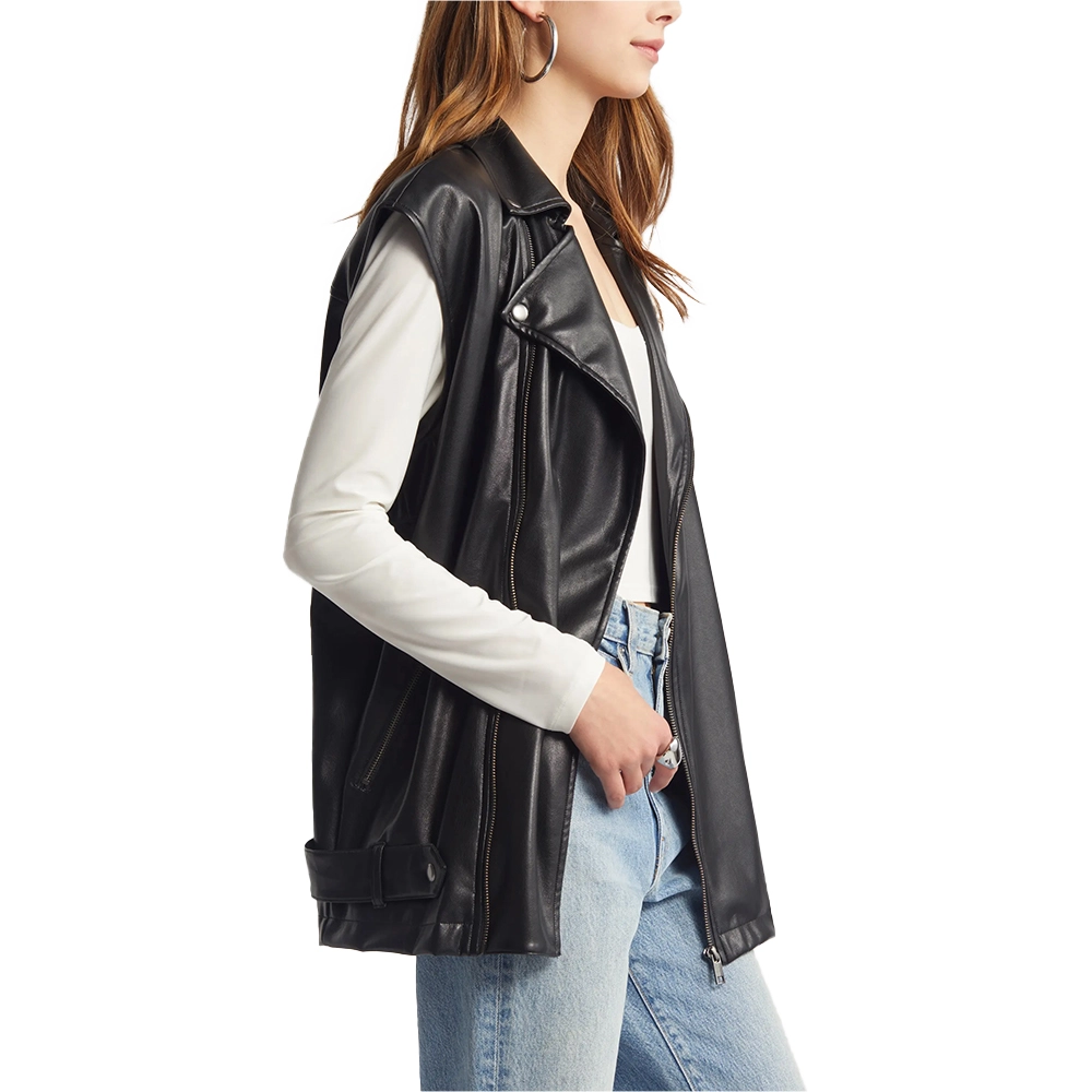 Womens Beautiful Black Plus Size Leather Motorcycle Vest