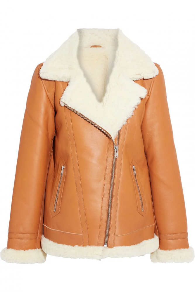 This shearling biker jacket offers warmth comfort and flexibility. The soft fur lining keeps you cozy in cold weather. The design allows easy movement and layering. It is perfect for winter wear travel and daily use. This jacket adds a confident and stylish touch to your outfit.