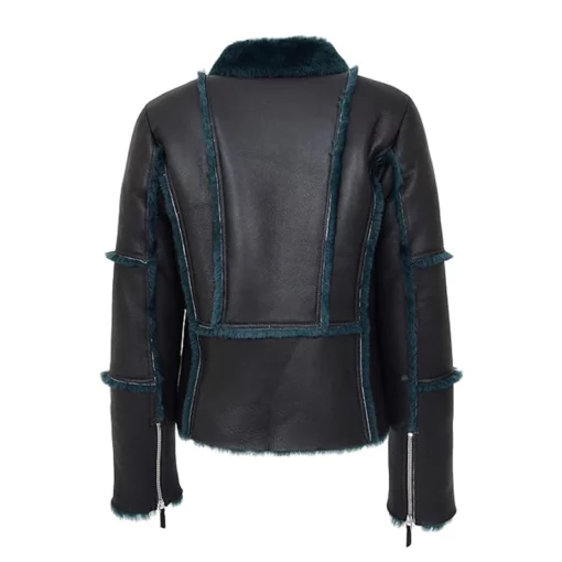 The durable sheepskin exterior provides excellent wind and water resistance, while the shearling lining offers superior insulation, making it a versatile layering piece for cold weather. It includes multiple pockets on the front and inside for both style and practicality, allowing the wearer to store essentials. The jacket’s sturdy construction and thoughtful detailing make it a highly functional and durable garment.