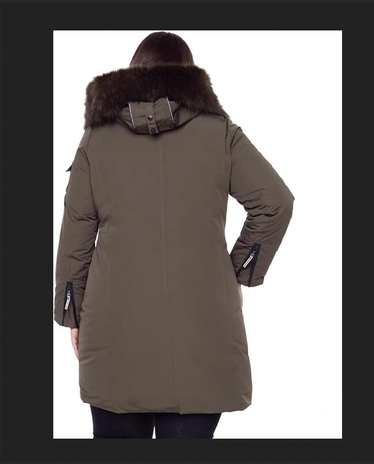 This jacket features a long parka silhouette with a full-length front zipper closure and an insulated hood for added warmth. The tailored cut provides a flattering women’s fit while allowing freedom of movement. Multiple pockets add practical storage, and the streamlined design ensures a clean, polished winter look that pairs well with boots, scarves, and cold-weather layers.